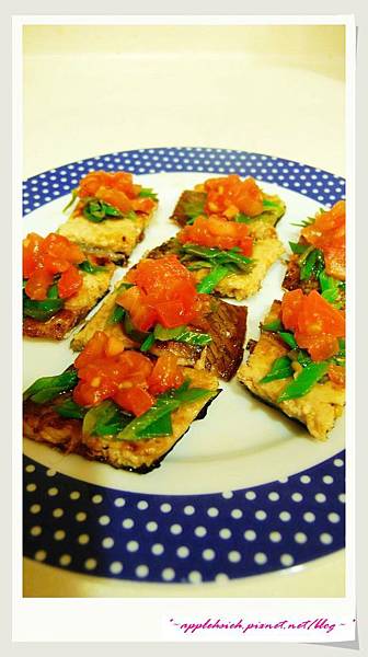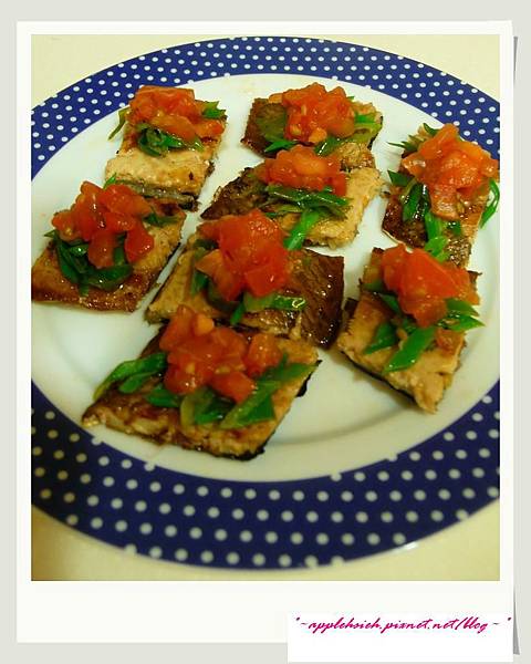 5.撈起擺盤,將肉面朝上,依序鋪上蔥絲、蕃茄丁即可